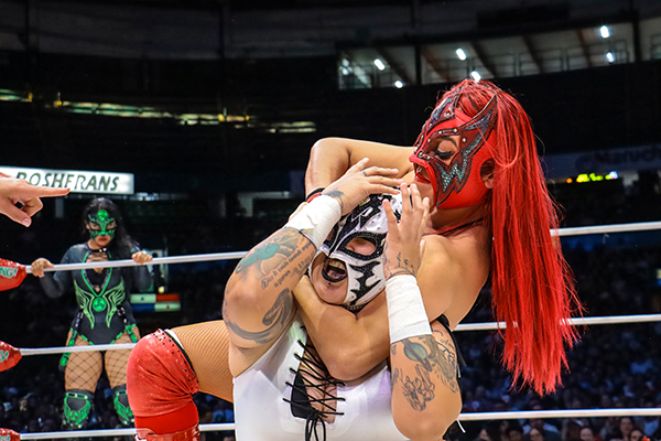 En la batalla femenil, Tessa Blanchard fue pieza determinante para que Las Chicas Indomables —Lluvia y La Jarochita— se llevaran la victoria sobre Metálica, quien esta tarde hizo causa común con Las Infernales, Dark Silueta y Valkyria.
