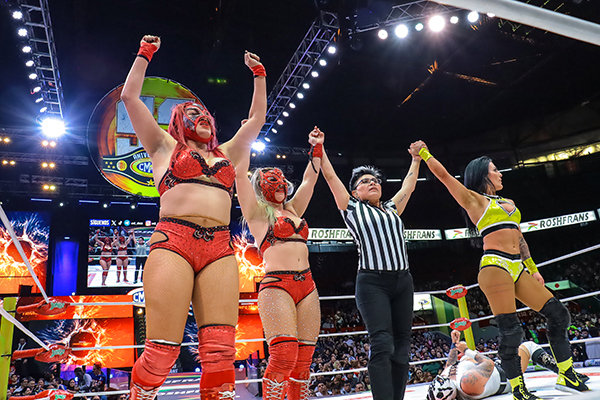 Uno de los momentos especiales de la tarde ocurrió antes de la lucha semifinal, cuando Maika, Starlight Kid y Mei Seira de STARDOM se presentaron ante la afición mexicana, oficialmente listas para iniciar su participación en nuestro país, desatando una gran ovación.