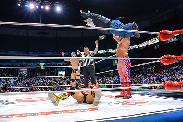 La química fue clave en el siguiente choque. Yutani encontró en Los Villanos —Hijo del Villano III y Villano III Jr.— el complemento perfecto para imponerse a Flip Gordon, Star Jr. y Dragón Legendario.