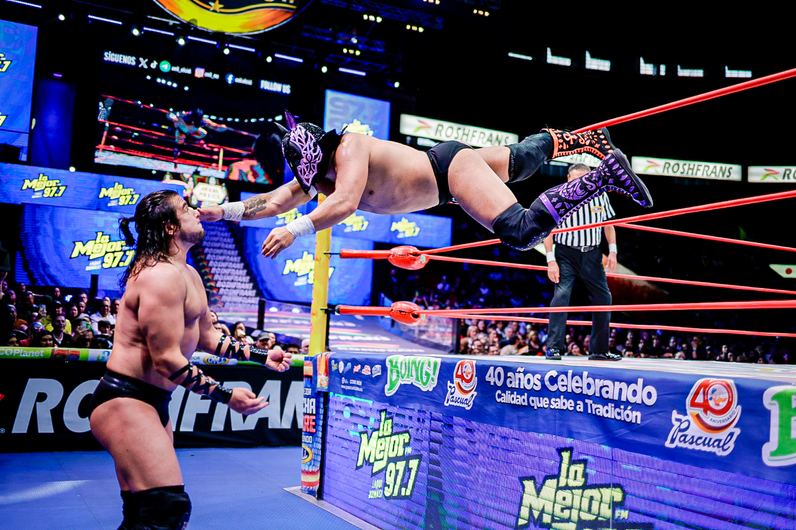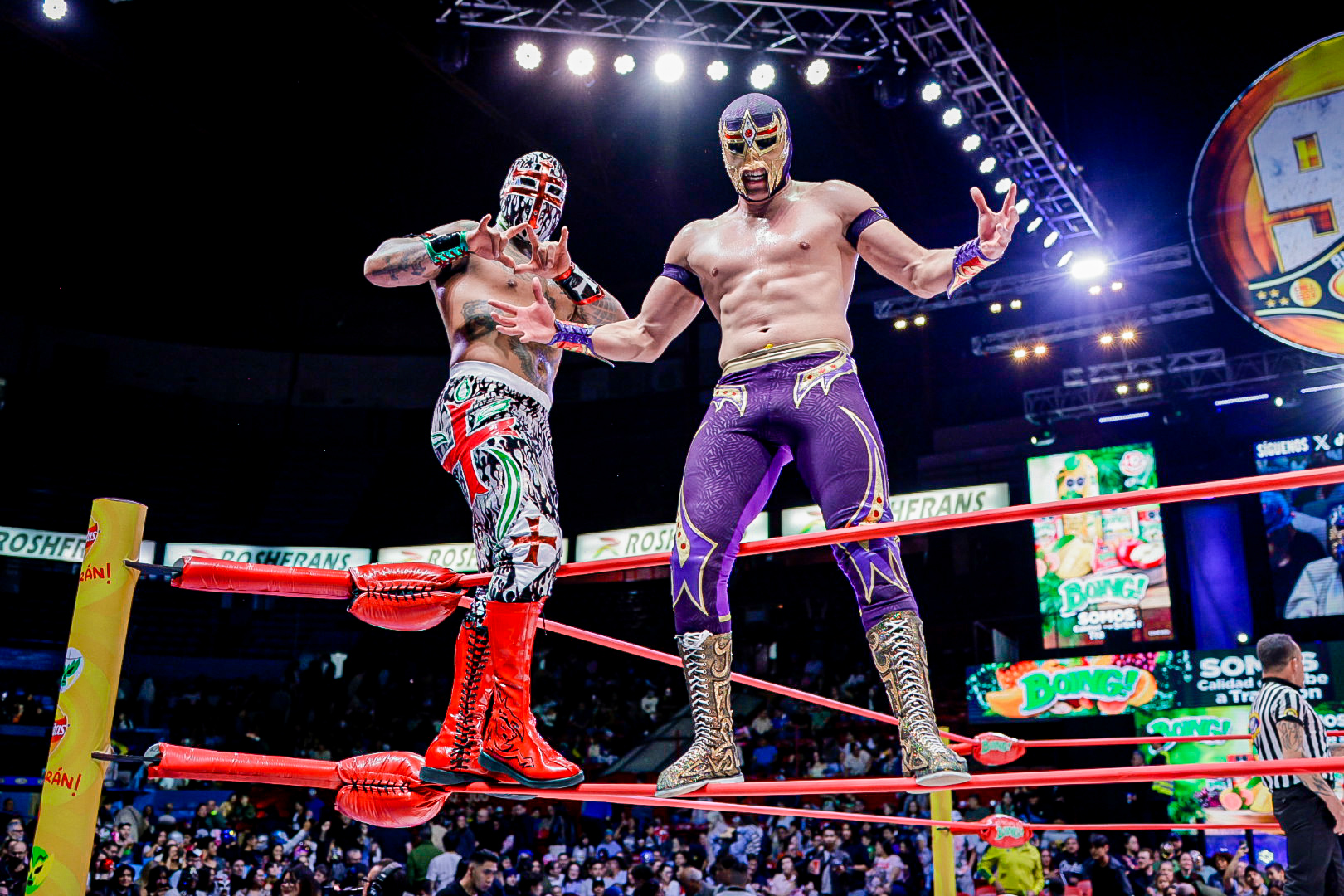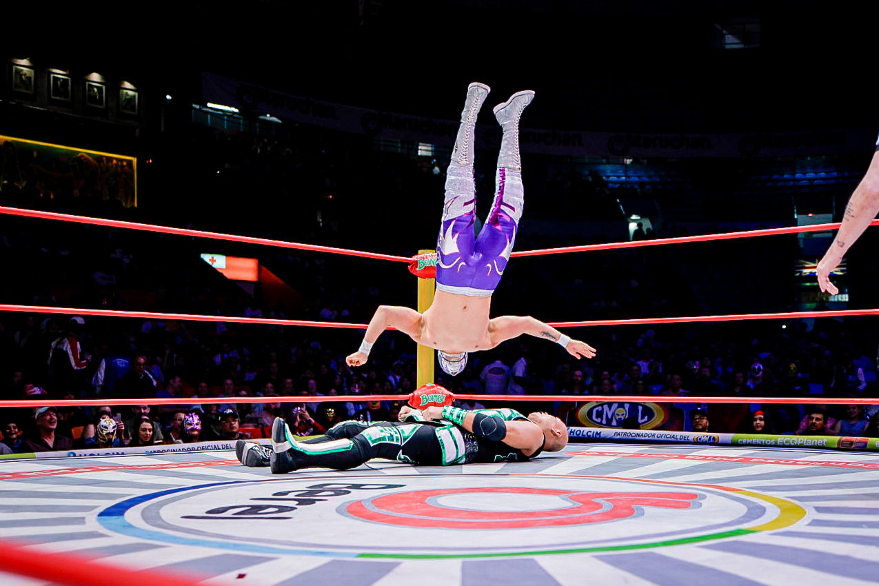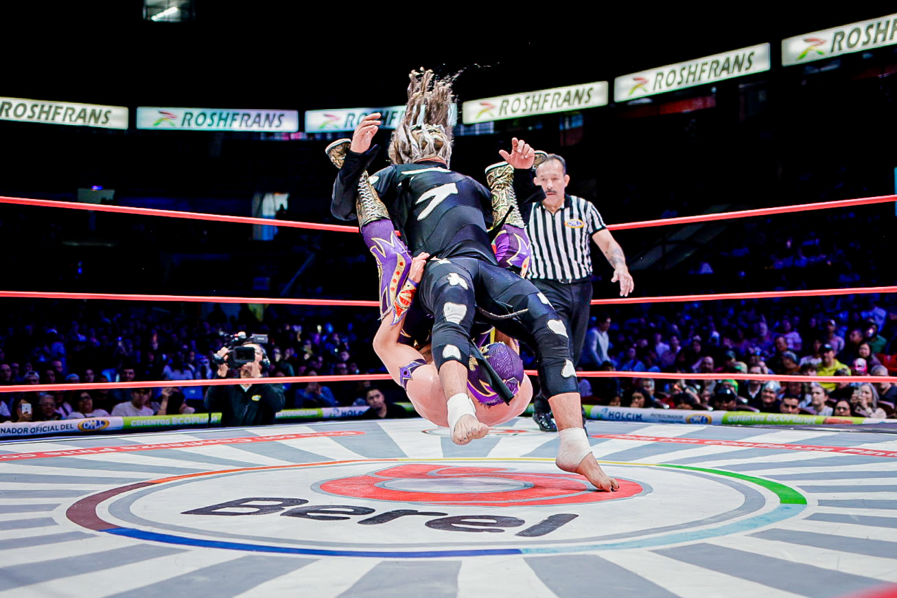 En el arranque de la función, la dupla aérea de Eléctrico y Fuego fue determinante para superar a Robin y Carnífice, marcando el inicio de una tarde llena de intensidad en la Catedral de la Lucha Libre.