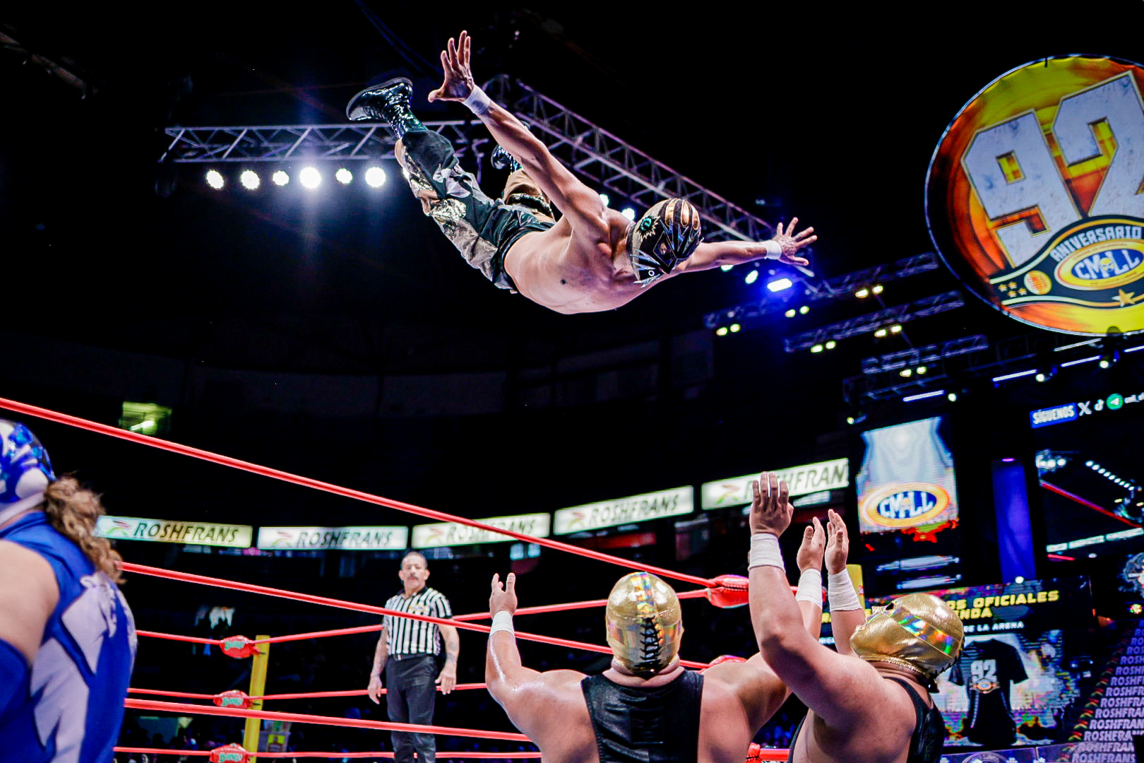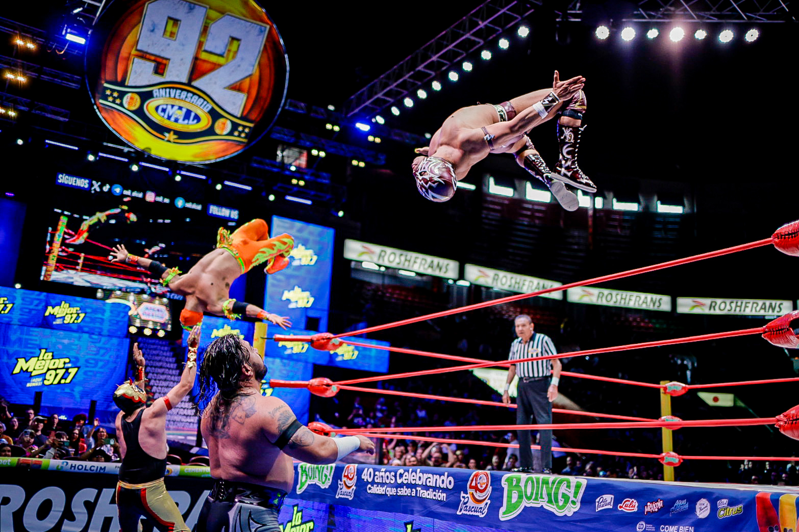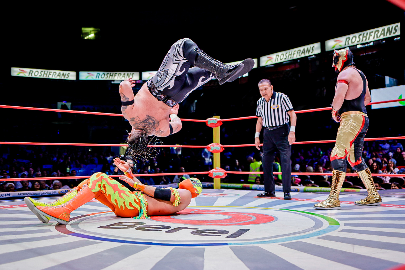 En el arranque de la función, la dupla aérea de Eléctrico y Fuego fue determinante para superar a Robin y Carnífice, marcando el inicio de una tarde llena de intensidad en la Catedral de la Lucha Libre.
