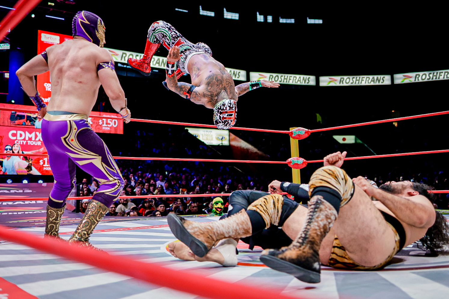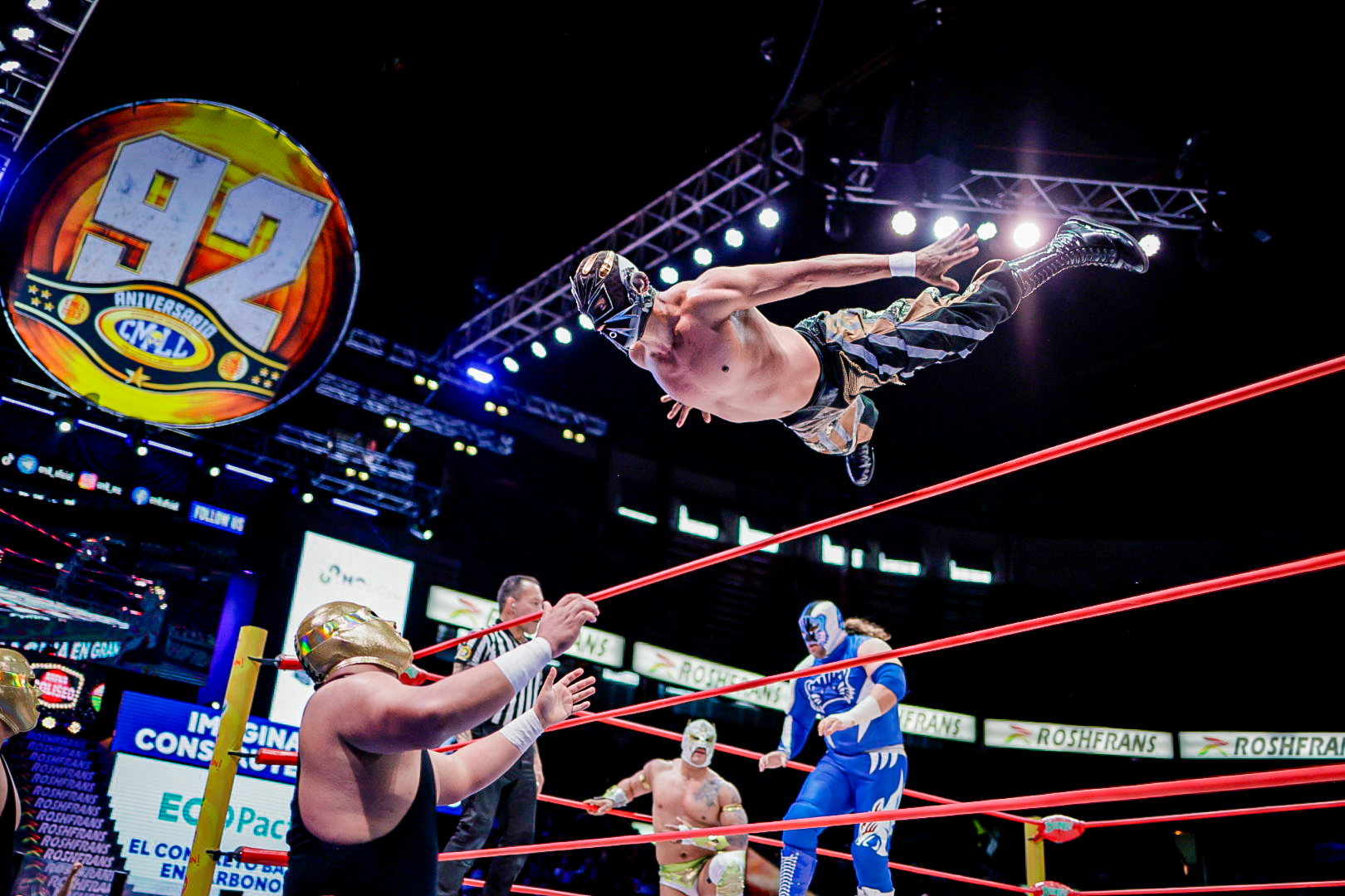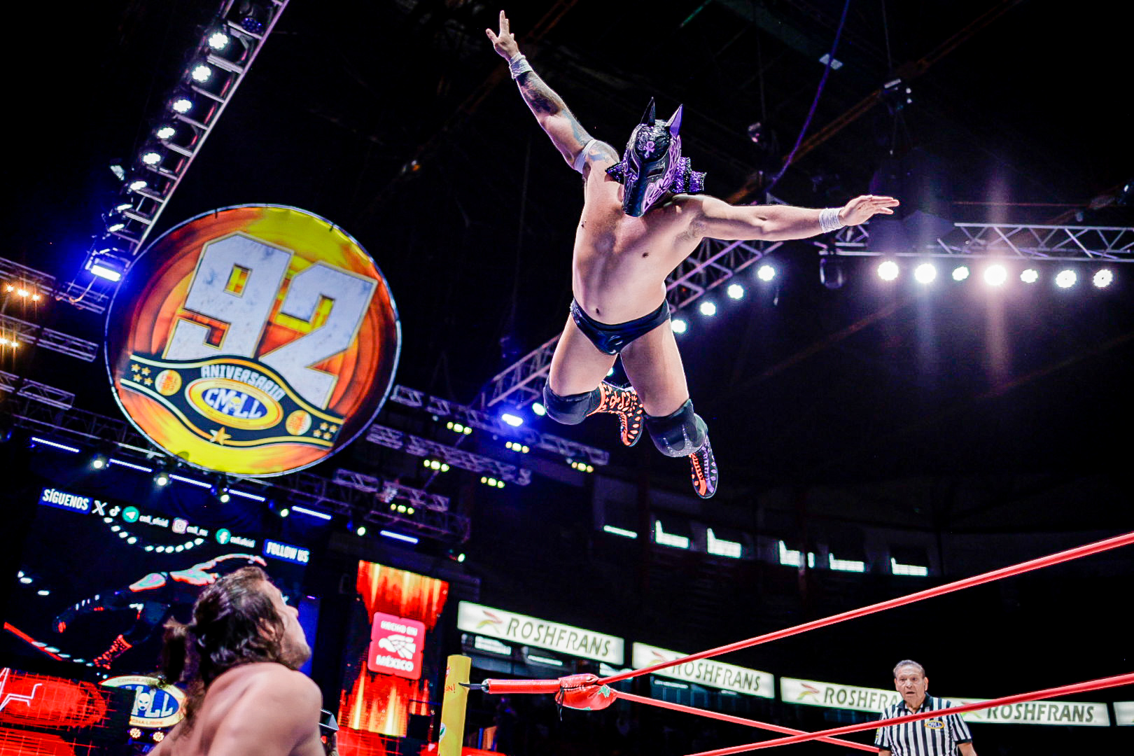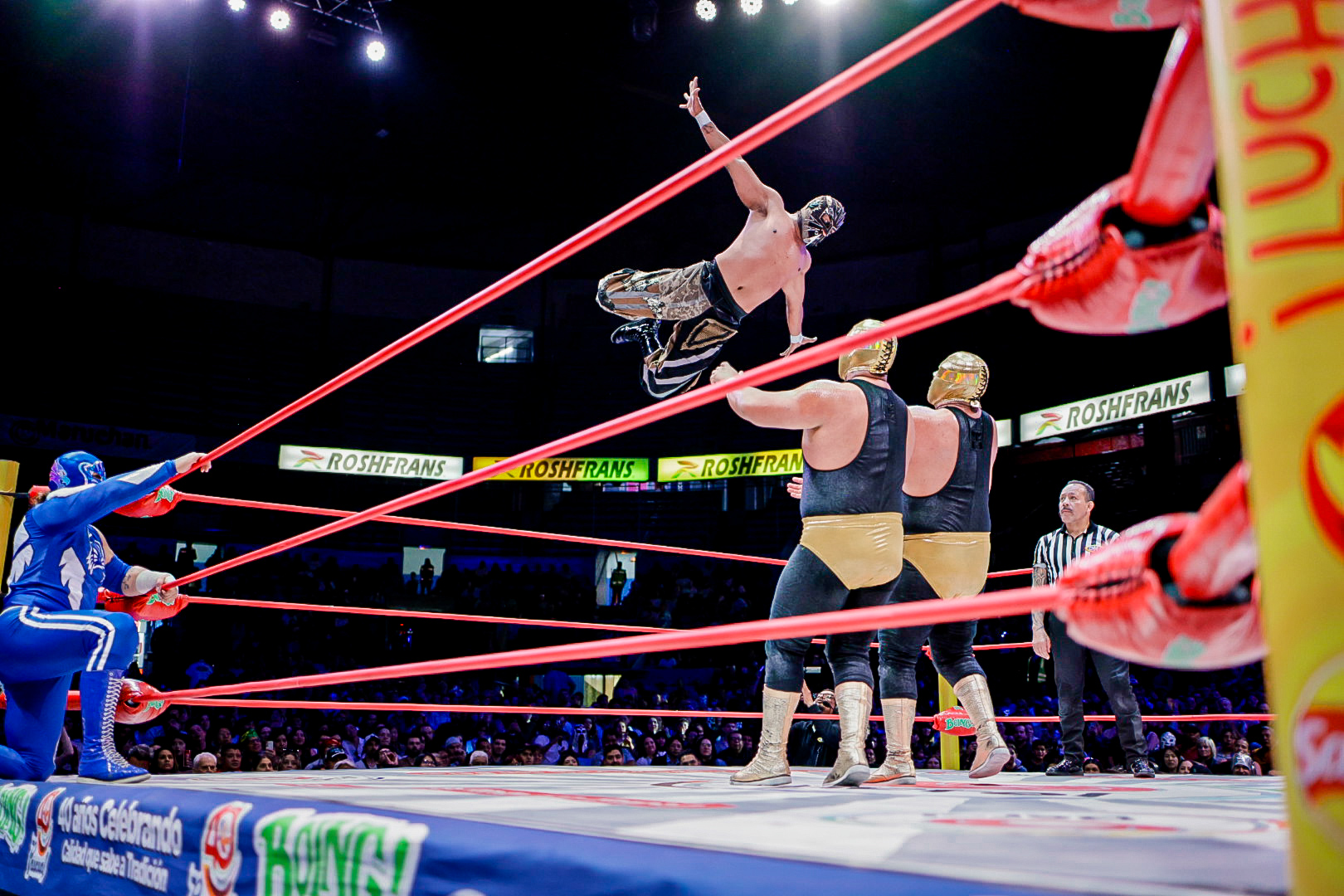 En el arranque de la función, la dupla aérea de Eléctrico y Fuego fue determinante para superar a Robin y Carnífice, marcando el inicio de una tarde llena de intensidad en la Catedral de la Lucha Libre.