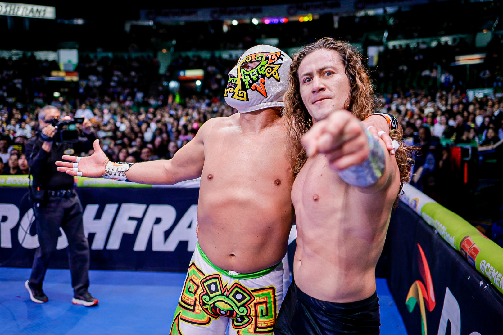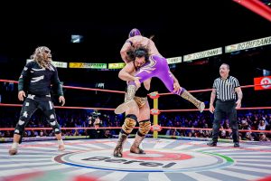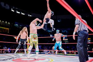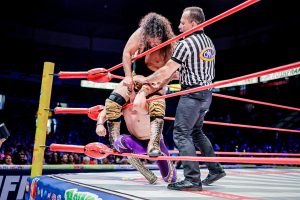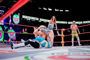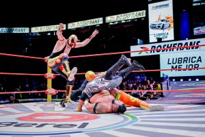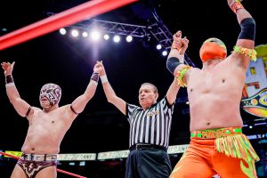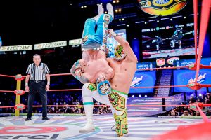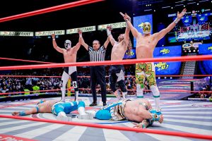 Antes, el poderío japonés de Okumura y Shoma Kato fue neutralizado por la espectacularidad lagunera de Magia Blanca y Brillante Jr.