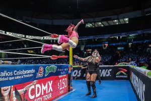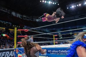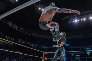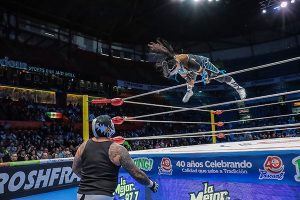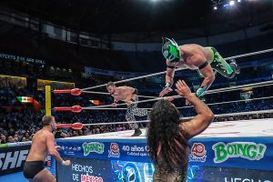 ¡Daniel García está aprendiendo rápido de la Lucha Libre Mexicana! Aplicando La Alejandrina, del legendario Black Shadow, rindió a Flip Gordon para darle la victoria a Bárbaro Cavernario. Neón fue aliado de Gordon en este explosivo encuentro.