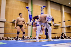 En la segunda lucha de la tarde, Los Viajeros del Espacio, Futuro y Valiente Jr., se apuntaron una victoria muy espectacular tras una dura confrontación ante Daiki Nagai y Bone Soldier Jr.