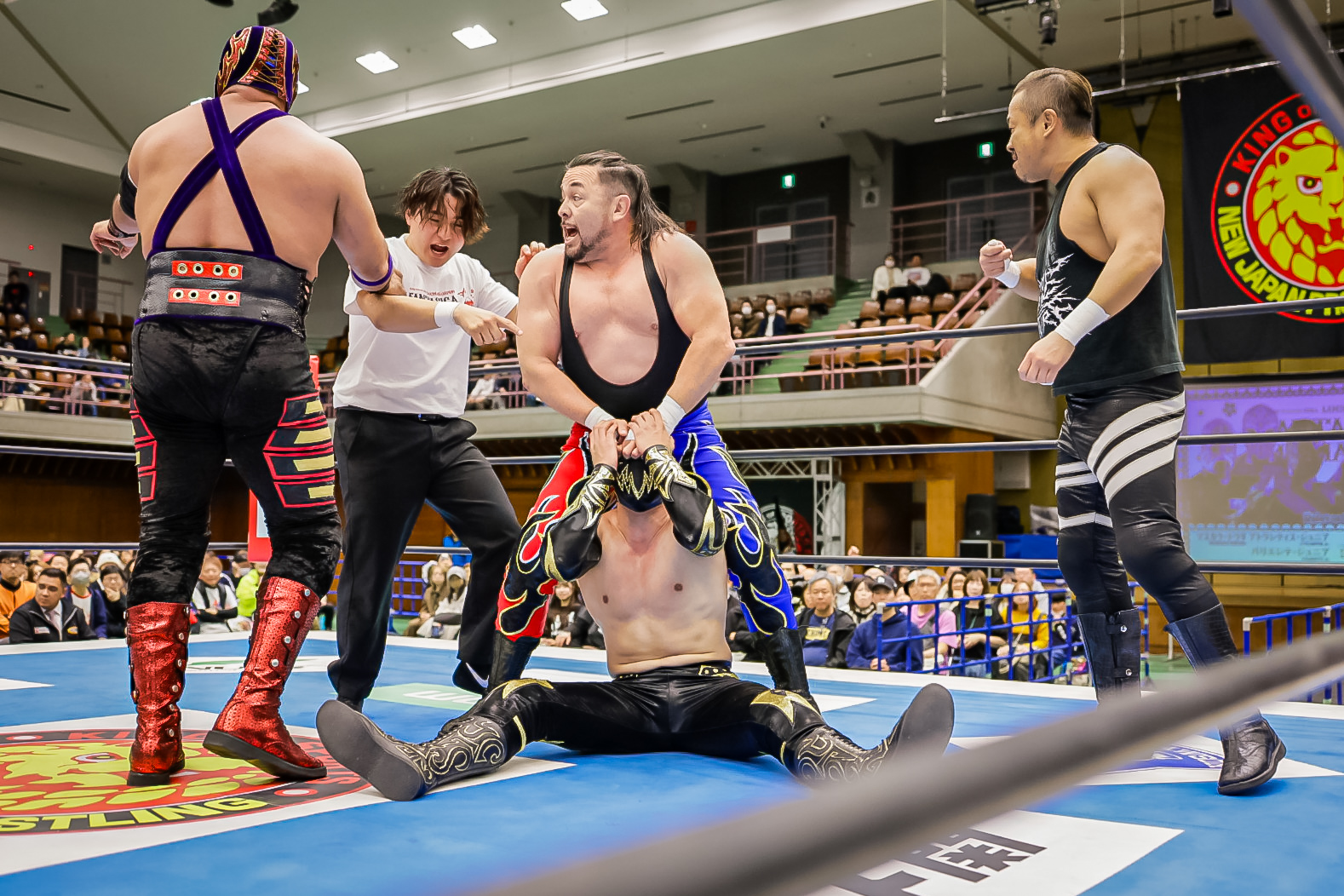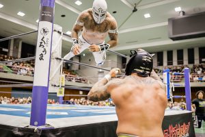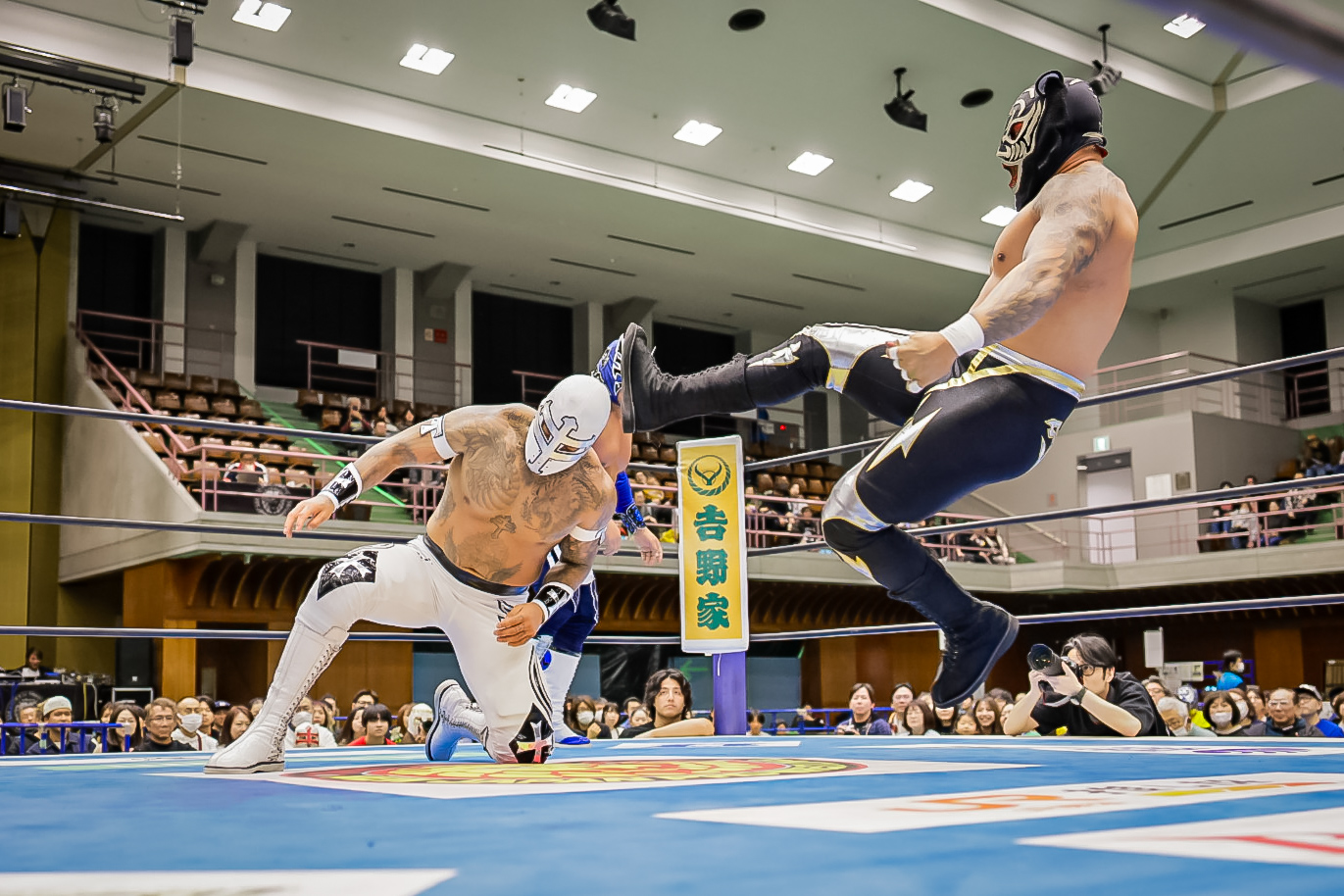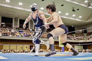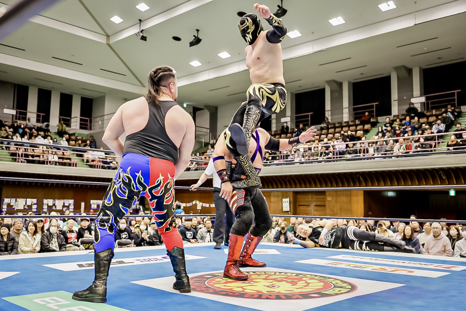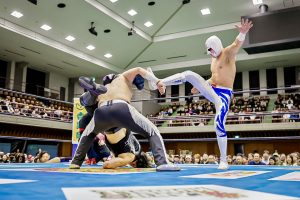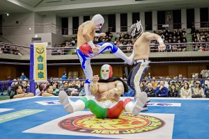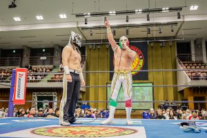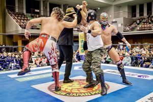 La batalla semifinal se inclinó del lado rudo cuando Máscara Dorada y Atlantis Jr. quedaron en desventaja tras la lesión de Valiente Jr.. Hechicero, Averno y Yoshinobu Kanemaru no perdonaron y capitalizaron la situación para llevarse la victoria.