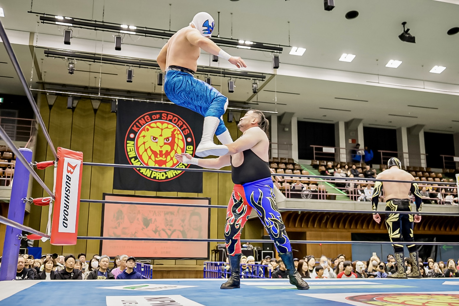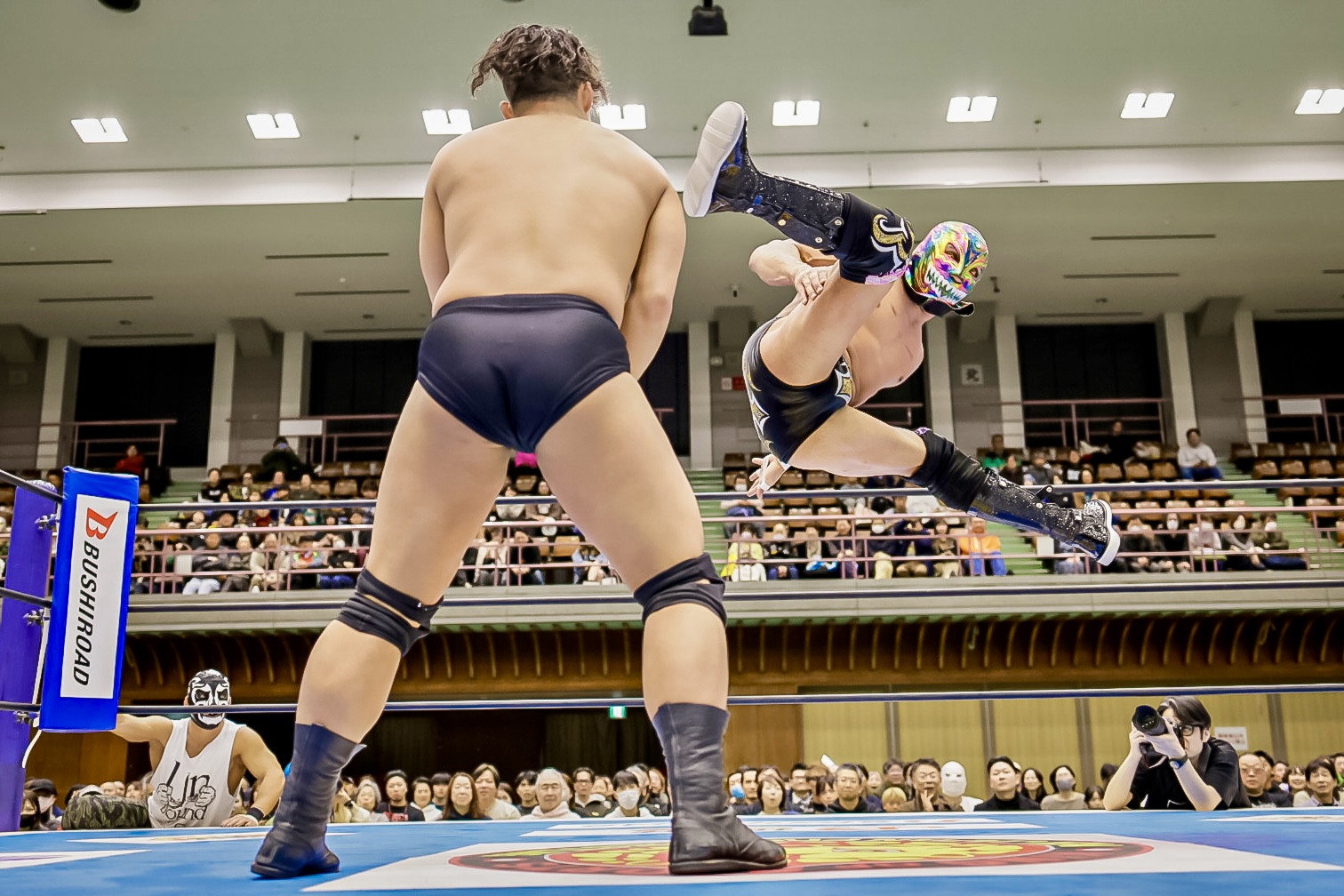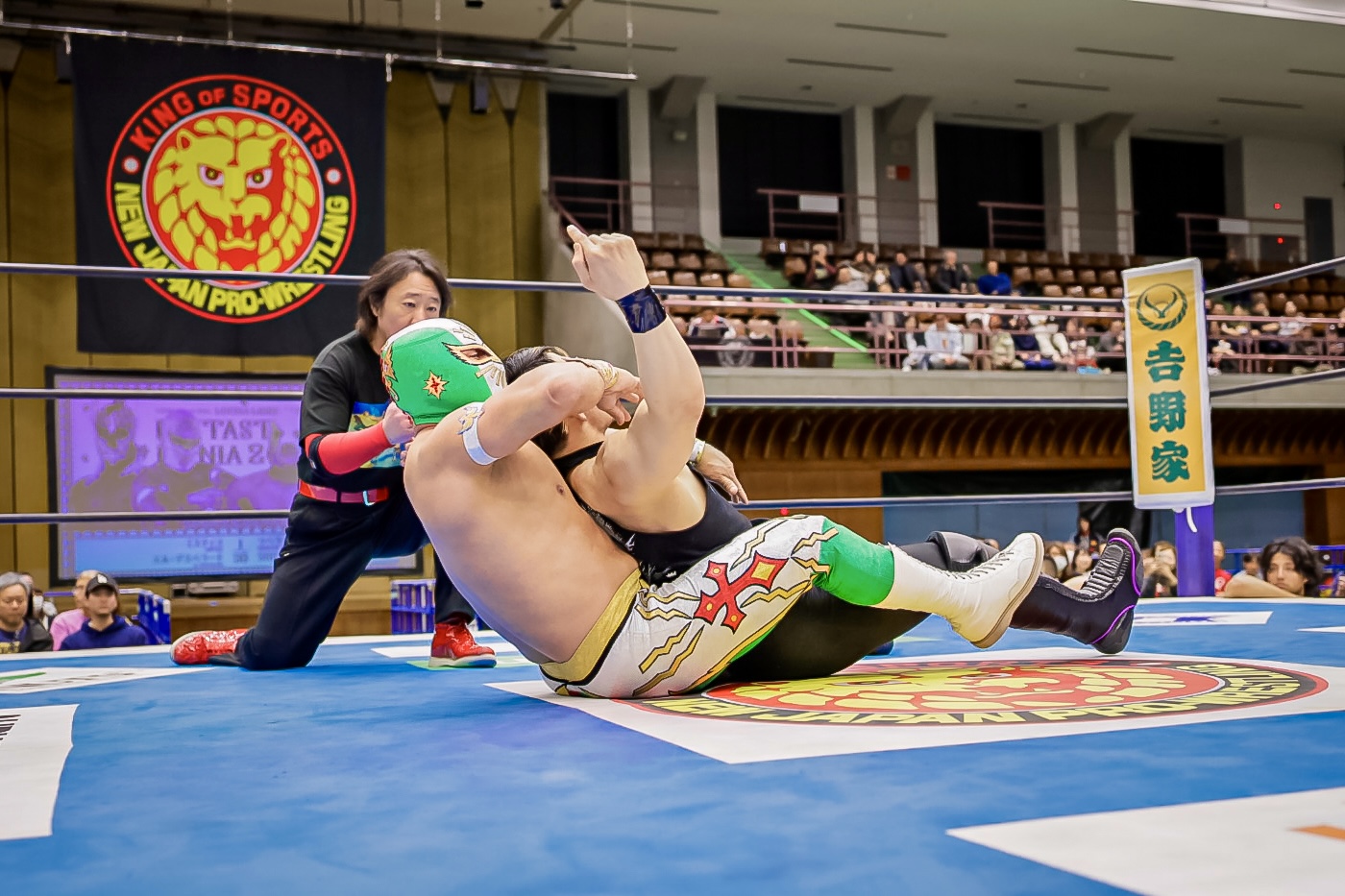 La batalla semifinal se inclinó del lado rudo cuando Máscara Dorada y Atlantis Jr. quedaron en desventaja tras la lesión de Valiente Jr.. Hechicero, Averno y Yoshinobu Kanemaru no perdonaron y capitalizaron la situación para llevarse la victoria.