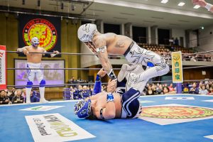 La función abrió con autoridad ruda: El Hijo de Stuka Jr. y Yujiro Takahashi marcaron territorio al derrotar sin objeciones a Futuro y Masatora Yasuda.
